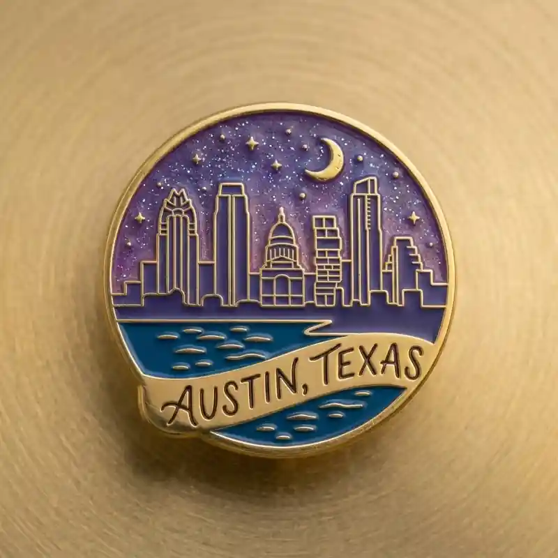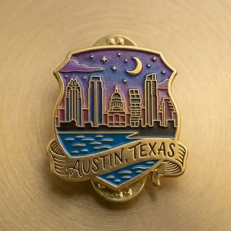 Entièrement personnalisable, votre pin's Austin Texas peut être orné d'éléments emblématiques tels que le Capitole de l'État du Texas, la ligne d'horizon d'Austin, des guitares, des thèmes de cow-boys ou des slogans locaux créatifs. La taille, la forme, l'épaisseur et la couleur peuvent être adaptées à vos besoins spécifiques.
