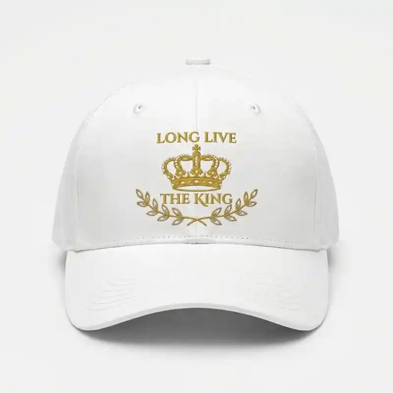 Entièrement personnalisable, le chapeau peut comporter la phrase “Longue vie au roi”, des motifs de couronne, des symboles royaux ou des logos de marque personnalisés. La broderie, les écussons imprimés, les écussons tissés et la sérigraphie nous permettent de créer des motifs distinctifs.