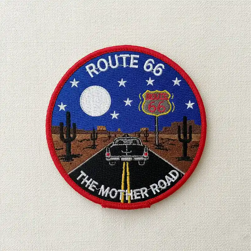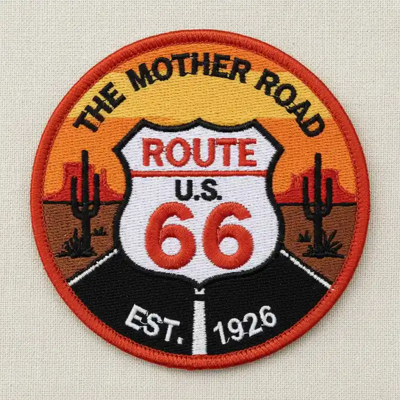 Choose from a wide range of embroidery thread colors and stitching styles to bring your custom Route 66 patch to life. The intricate detailing ensures the iconic road sign and any additional design elements stand out clearly.